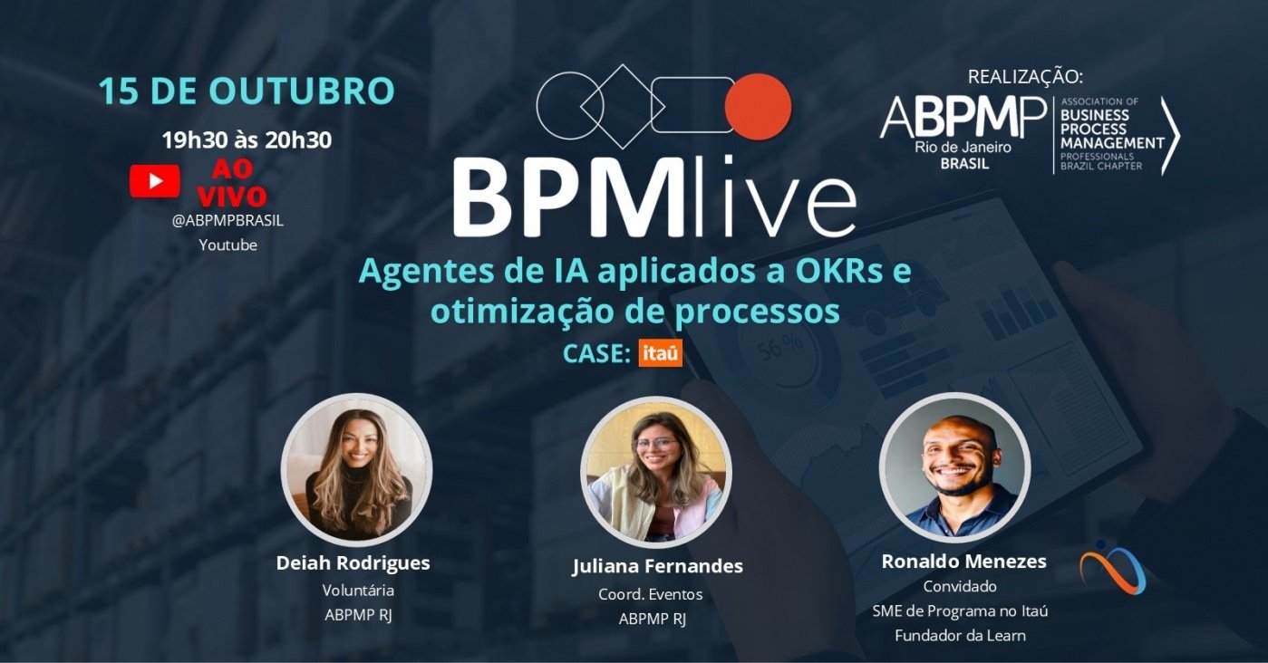 O BPM LIVE é o circuito de lives da ABPMP Brasil com objetivo de levar ao nosso público os conhecimentos e experiencia de diversos profissionais da nossa rede através de um bate papo descontraído no Youtube da ABPMP Brasil.